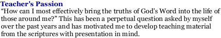 Having been in various kinds of full-time ministry for twenty years, I have come to understand the needs of the local church and the grief found in the heart of a broken individual. Regularly meeting with pastors from dif- ferent denominations for prayer and planning have given me a greater understanding of the need to network together to accomplish God's great- er goals for a community and the world. |